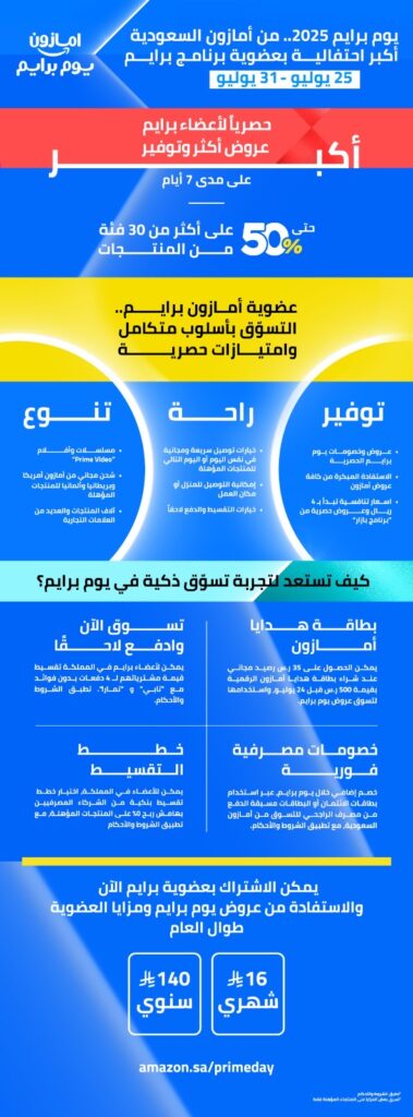 أمازون السعودية تُطلق 7 أيام متواصلة من عروض “يوم برايم 2025” الحصرية لأعضاء برايم، من 25 – 31 يوليو