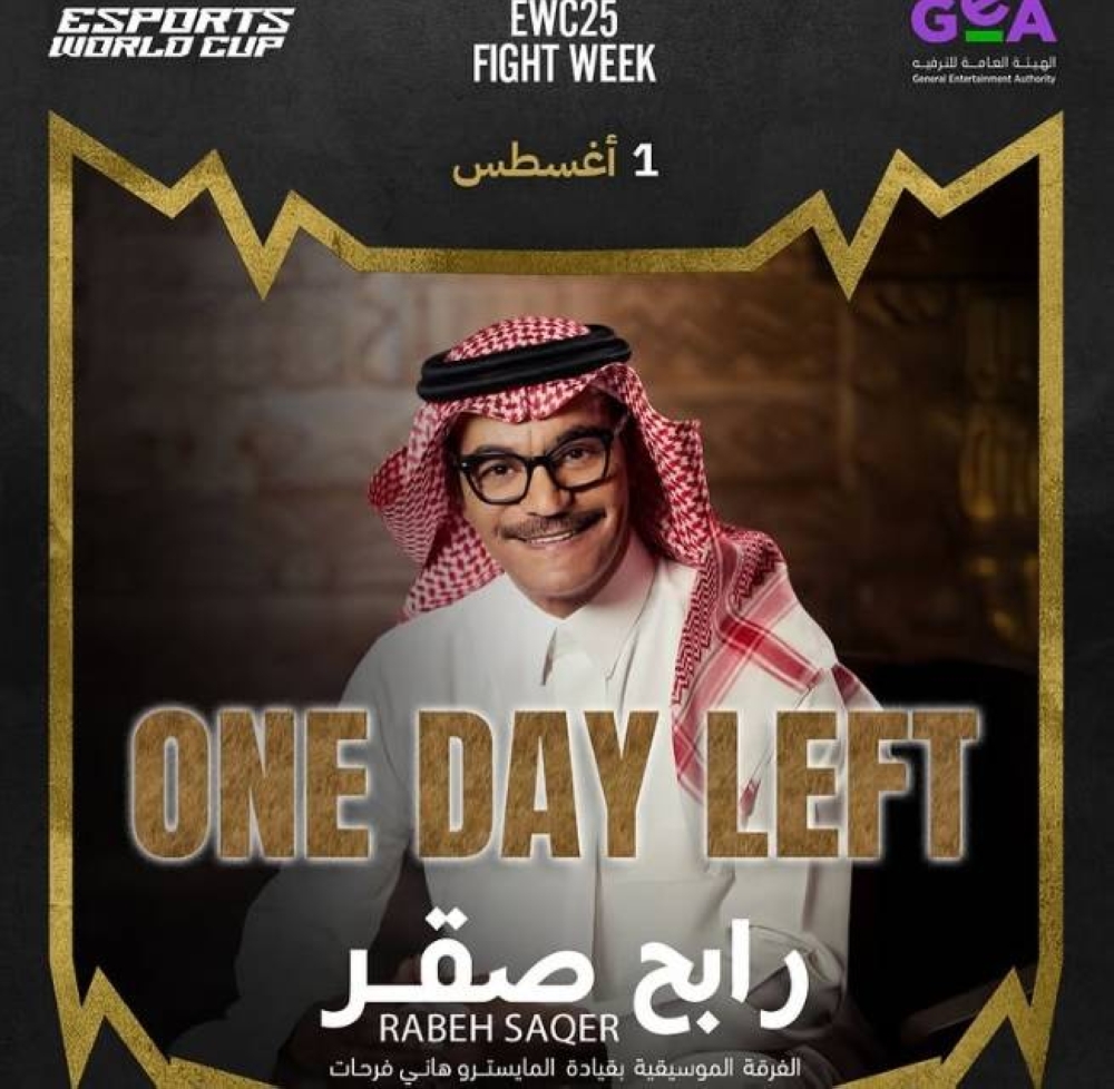 كما تضمن البوستر الثاني كلمات إحدى أغاني الصقر «هو هذا»، وجاء فيه: «هو هذا اللي نحبه هو هذا اللي نبيه، صقر الأغنية العربية الفنان رابح صقر، يلتقيكم ضمن حفلات كأس العالم للرياضات الإلكترونية، بنقلِع معاه وبنحلق للقمة».
