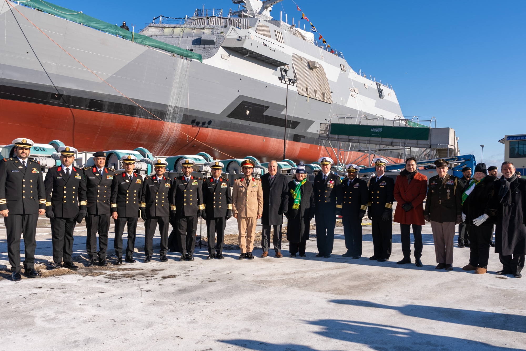 شهد مراسم التعويم رئيس أركان القوات البحرية الفريق الركن محمد بن عبدالرحمن الغريبي، بحضور وفد رفيع المستوى من كبار الضباط والمسؤولين من الجانبين السعودي والأمريكي. وأعرب الفريق الغريبي عن فخره بهذه الخطوة، مشيداً بالدعم اللامحدود الذي توليه القيادة الرشيدة لتطوير القوات المسلحة، مؤكداً أن هذه السفن ستشكل إضافة نوعية لمنظومة الأمن البحري للمملكة.