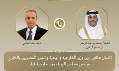 في اتصال هاتفي اليوم (الثلاثاء) بحث وزيرا خارجية مصر وقطر الترتيبات الخاصة باستضافة مصر لمؤتمر التعافي المبكر