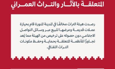 ضبطت هيئة التراث مواطناً مخالفاً في المدينة المنورة قام بحيازة عملات قديمة وعرضها للبيع عبر وسائل التواصل الاجتماعي