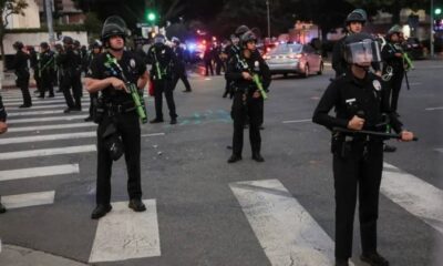 بعد ساعات من فرض الطوارئ وحظر التجول ليلاً، اعتقلت شرطة لوس أنجلوس بولاية كاليفورنيا، اليوم (الأربعاء)، عدداً