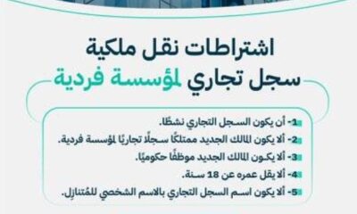 أوضحت وزارة التجارة، اشتراطات ومتطلبات نقل ملكية السجل التجاري لمؤسسة فردية من وإلى شخص آخر عبر الخدمات الإلكترونية