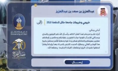 في مشهد احتفالي يفيض بالاعتزاز، بعث أمير منطقة حائل الأمير عبدالعزيز بن سعد بن عبدالعزيز رسالة خاصة إلى أكثر من