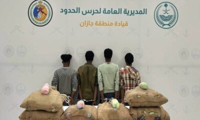 قبضت الدوريات البرية لحرس الحدود في قطاع الدائر بمنطقة جازان على (4) مخالفين لنظام أمن الحدود من الجنسية الإثيوبية،
