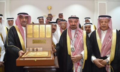 تسلّم أمير منطقة نجران الأمير جلوي بن عبدالعزيز بن مساعد بمقر الإمارة، قلادة الوطن، ودرعاً، وهديتين تذكاريتين،