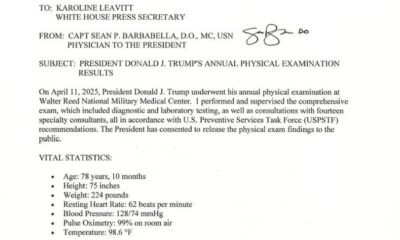 أعلن أطباء البيت الأبيض، اليوم (الأحد)، أن الرئيس الأمريكي دونالد ترمب في صحة ممتازة، بعدما أجرى أول فحوص طبية