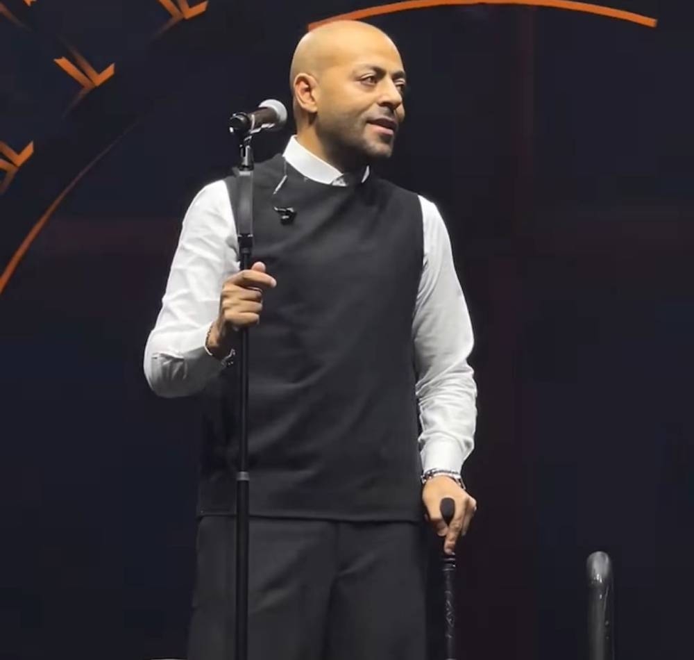 بعكاز وابتسامة.. تامر عاشور يتحدى الإصابة ويشعل حفل الكويت