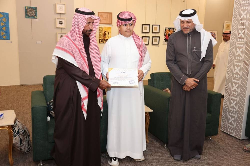 وكرمت الجمعية المشاركين والشركاء، ووزّعت الشهادات التقديرية، إلى جانب تكريم الفنان والخطاط صبحي الزهراني تقديرًا لعطائه وإبداعه وإسهاماته في دعم الفنون البصرية طيلة فترة عمله بالجمعية مشرفاً على لجنة الفنون التشكيلية والخط العربي.