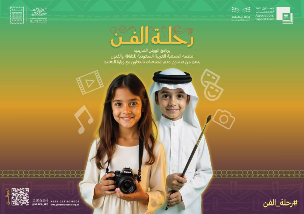 تنظم الجمعية العربية السعودية للثقافة والفنون برنامج (رحلة الفن) المتضمنة الورش التدريبية الفنية الخاصة بطلاب التعليم في المسارات الفنية المتنوعة (المسرح، والسينما، والموسيقى، والفنون البصرية) بدعم من صندوق دعم الجمعيات وبالتعاون مع وزارة التعليم، ويستمر لمدة خمسة أيام خلال الفترة من 18 – 22 مايو 2025، من الساعة 5:00 إلى 7:00 مساء، بالتزامن في مدن الرياض والدمام وجدة.