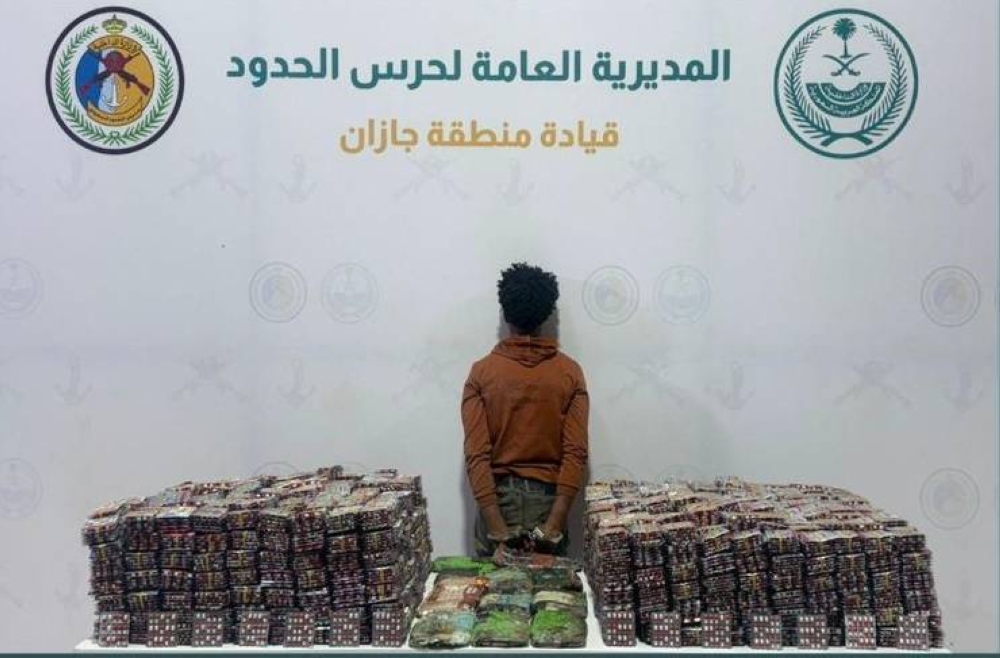 قبضت الدوريات البرية لحرس الحدود في قطاع العارضة بمنطقة جازان على مخالف لنظام أمن الحدود من الجنسية الإثيوبية، لتهريبه (11.5) كيلوجراماً من مادة الحشيش المخدر و(197,700) قرص خاضع لتنظيم التداول الطبي، وجرى استكمال الإجراءات النظامية الأولية بحقه، وتسليمه والمضبوطات لجهة الاختصاص.