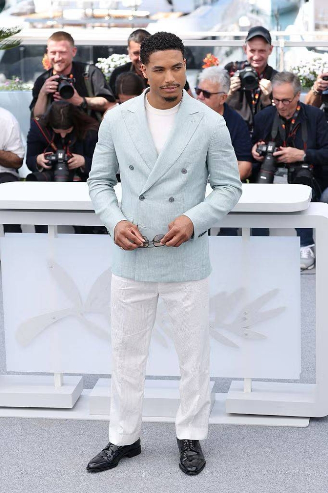 • غريغ تارزان ديفيس: اختار بدلة أنيقة باللون الأزرق الفاتح من تصميم Giorgio Armani، مما أضفى لمسة من الانتعاش والأناقة على مظهره، أكمل إطلالته بنظارات شمسية أنيقة، مما أضاف لمسة من العصرية والتميز.