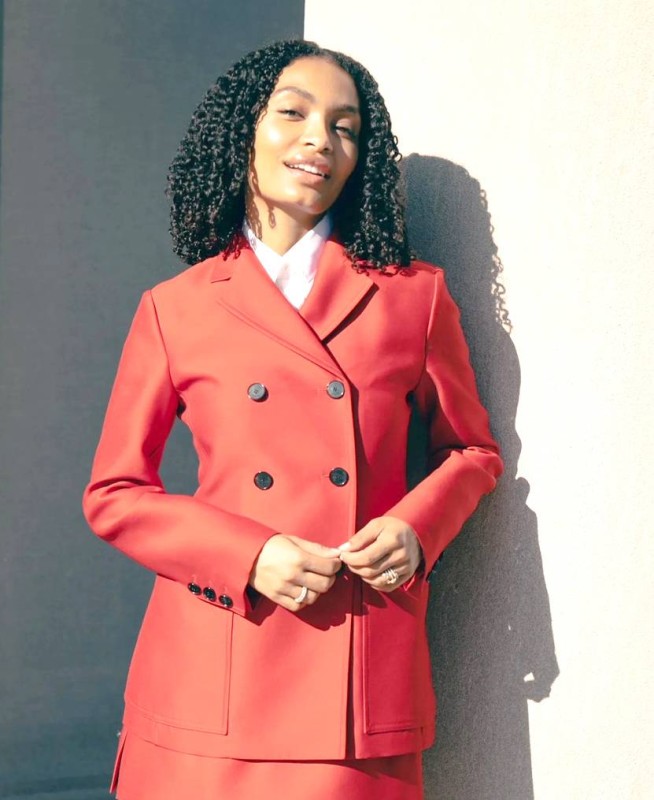 اختارت عارضة الأزياء العالمية يارا شهيدي بدلة مميزة باللون الطوبي مصممة لها خصيصاً من دار الأزياء العالمية ديور،