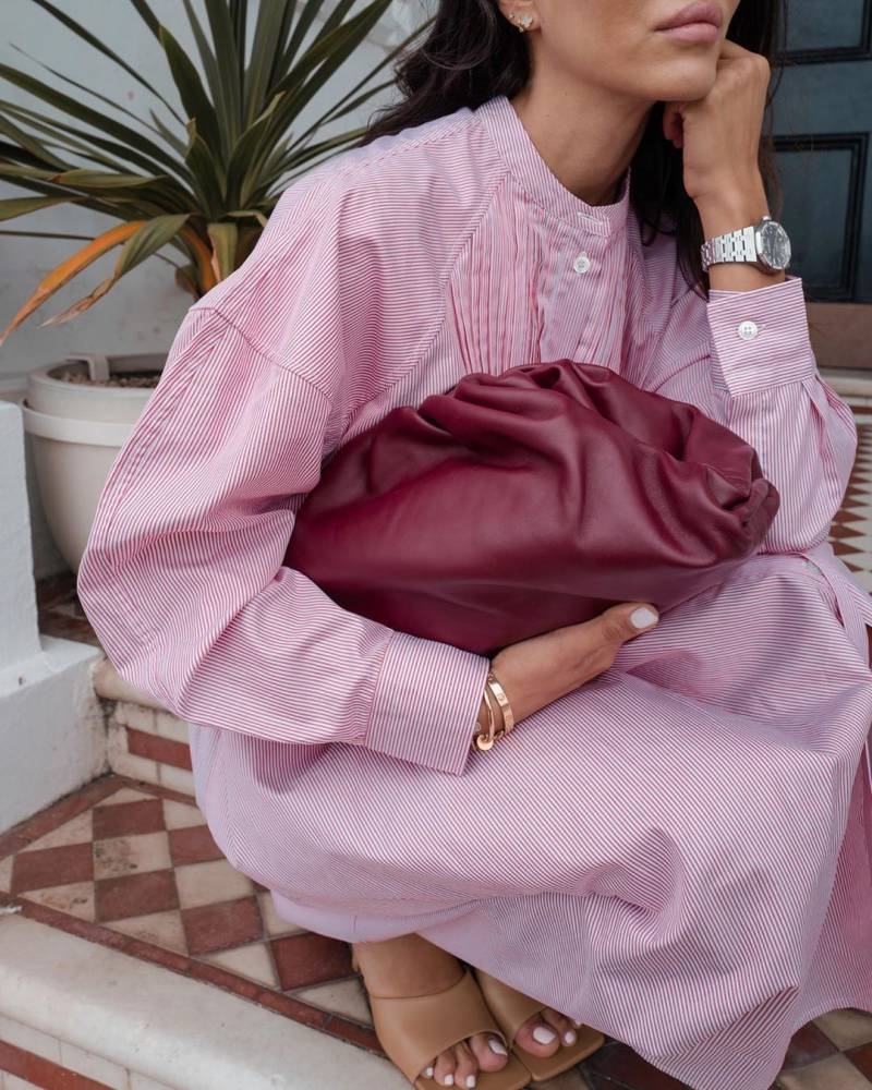 يمكن استخدام الإكسسوارات بلون مكمّل لإكمال الإطلالة. على سبيل المثال، حقيبة أو أحذية برغندية مع فستان وردي، مما يضيف المزيد من العمق.