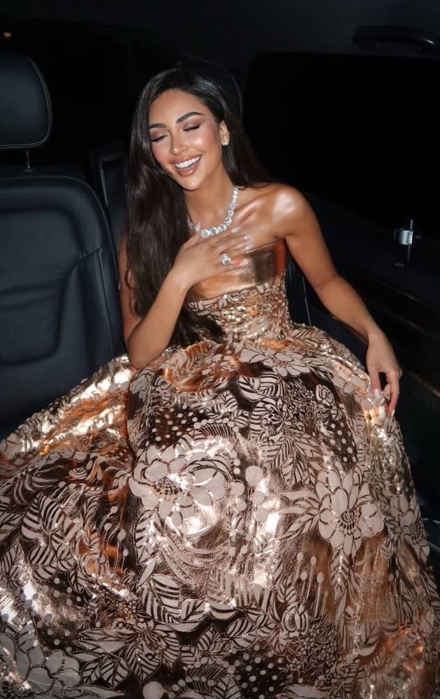 وفي إطلاله أخرى سحرت النجمة نور الغندور الأنظار بفستان وردي بتصميم طويل دون أكمام، بلون وردي ناعم مزين بالكامل بحبيبات برّاقة وتطريزات دقيقة توزعت بتناغم على كامل الفستان، مع تدرّج لوني خفيف ، وكان التفصيل الأبرز قلب لامع ثلاثي الأبعاد، يحيط به تطريز شعاعي يشبه أشعة الشمس، أضاف لمسة فنية غير تقليدية. وكان الفستان مزوّداً بقطعتين طويلتين من قماش الشيفون الوردي الناعم، تنسدلان من الكتفين وتنسابان على الجانبين مثل الكاب، مما أعطى الحركة أناقة درامية راقية.