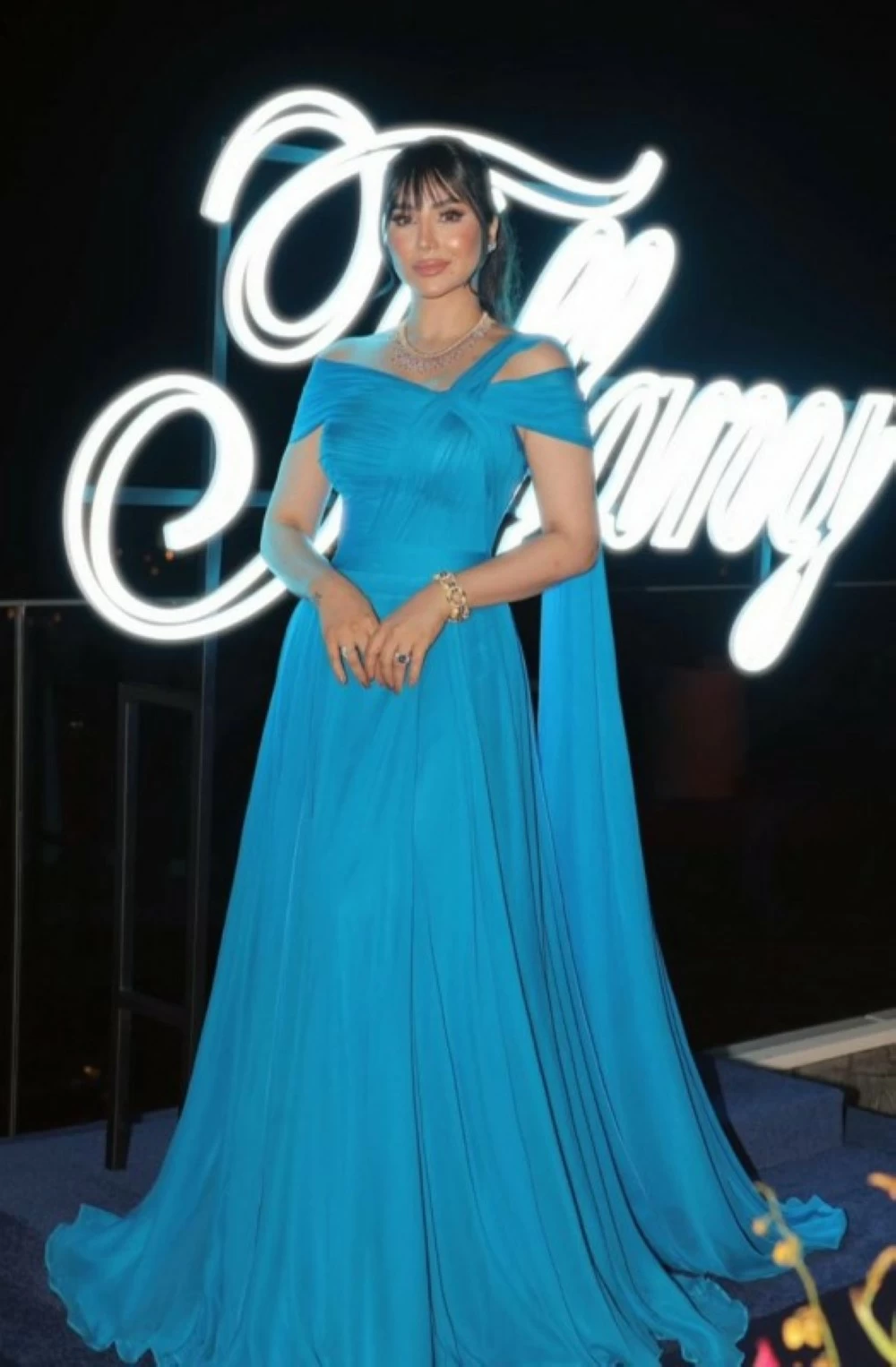 لجين عمران تتألق بفستان أزرق سماوي أنيق ومجوهرات ماسية، لتخطف الأنظار بإطلالة راقية ومكياج ناعم يبرز جمالها في أحدث ظهور لها.