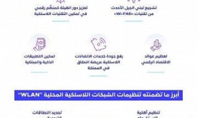 أصدرت هيئة الاتصالات وتقنية المعلومات وثيقة تنظيمات الشبكات اللاسلكية المحلية «WLAN» التي مكنت من خلالها الجيل