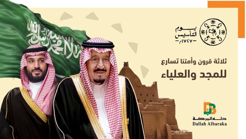 احتفت «دلة البركة» بذكرى يوم التأسيس، الذي يوافق 22 فبراير من كل عام، عبر فيديو يتتبع مسيرة الراية التي لا تنكس؛ حيث يستعرض تحولات العلم السعودي وتشكله عبر ثلاثة قرون.