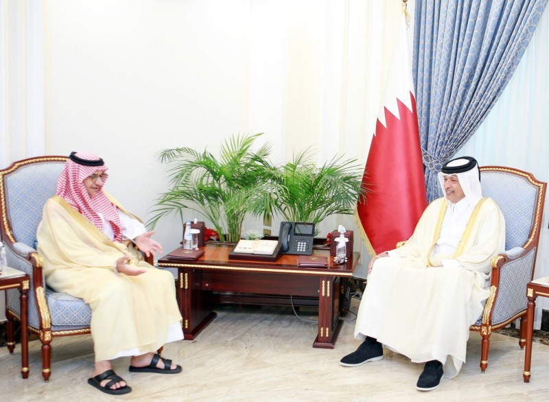 اجتمع رئيس مجلس الشورى بدولة قطر حسن الغانم أمس بسفير خادم الحرمين الشريفين لدى قطر الأمير منصور بن خالد بن فرحان.وجرى