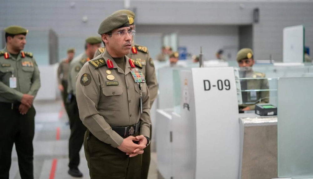 وقف مدير عام الجوازات المكلف اللواء الدكتور صالح بن سعد المربع، على سير العمل في مجمع صالات الحج بمطار الملك عبدالعزيز