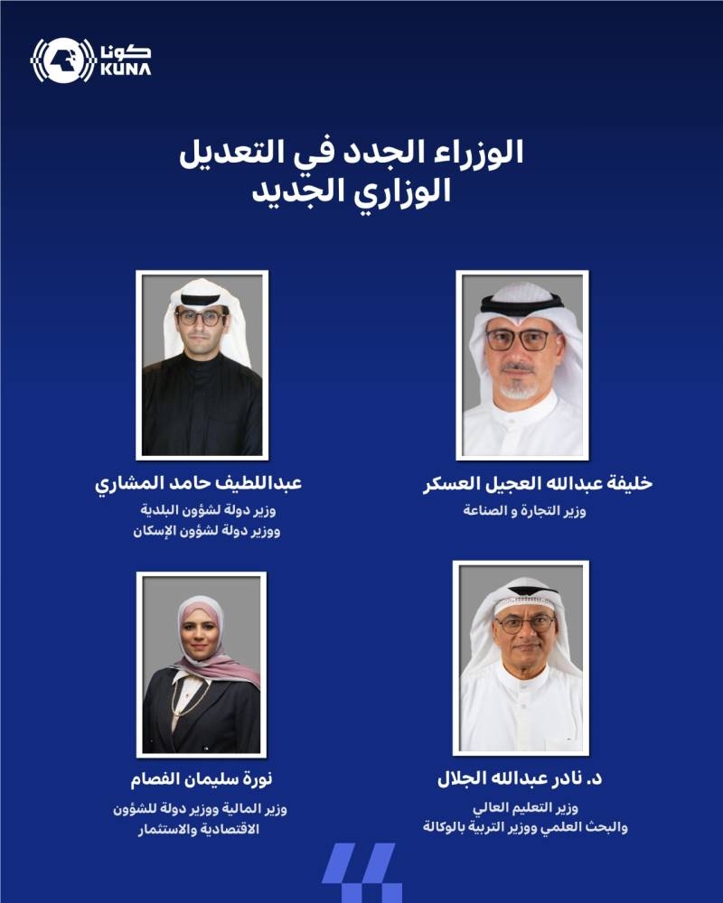 صدر، اليوم (الأحد)، مرسوم أميري في الكويت بتعديل تعيين عدد من الوزراء، وتعيين وزراء آخرين في حكومة الشيخ أحمد عبدالله الأحمد الصباح، وجاء على النحو التالي: