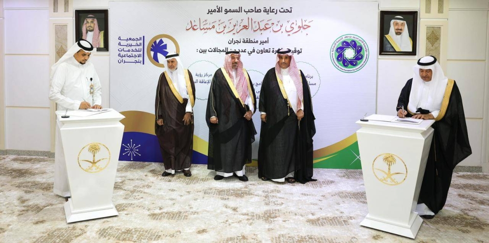 أمير نجران يشهد توقيع مذكرة تفاهم بين «مؤسسة الأمير محمد بن فهد للتنمية» و«جمعية الخدمات الاجتماعية»