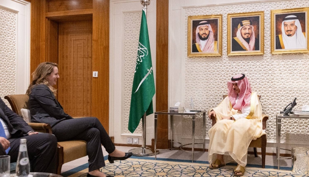 الأمير فيصل بن فرحان يستعرض علاقات التعاون مع إيمي بوب