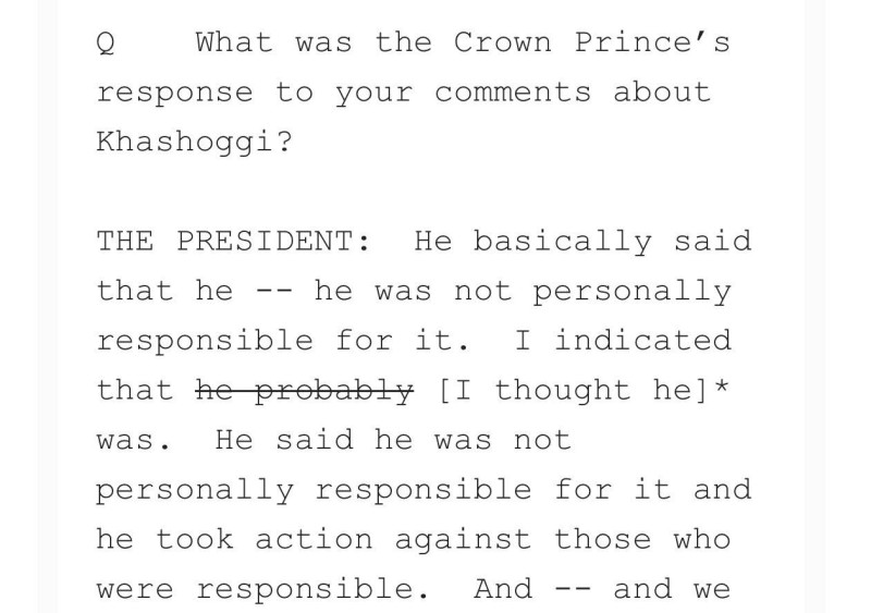 تراجع «البيت الأبيض» عن نص التصريح الذي جاء على لسان الرئيس الأمريكي جو بايدن للصحفيين، حول ما قاله لولي العهد