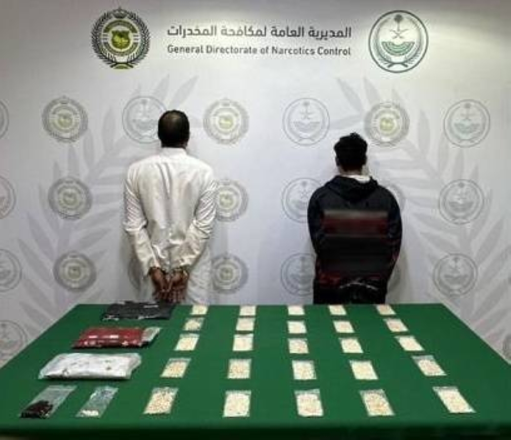 قبضت المديرية العامة لمكافحة المخدرات على مواطنين بمنطقة الحدود الشمالية لترويجهما مادتي الحشيش والإمفيتامين المخدرتين، وأوقفا واتخذت الإجراءات النظامية بحقهما، وأحيلا إلى النيابة العامة.
