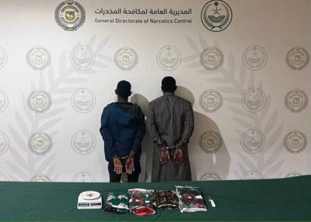 قبضت المديرية العامة لمكافحة المخدرات على مخالفين لنظام أمن الحدود من الجنسية الإثيوبية بمنطقة الرياض لترويجهما