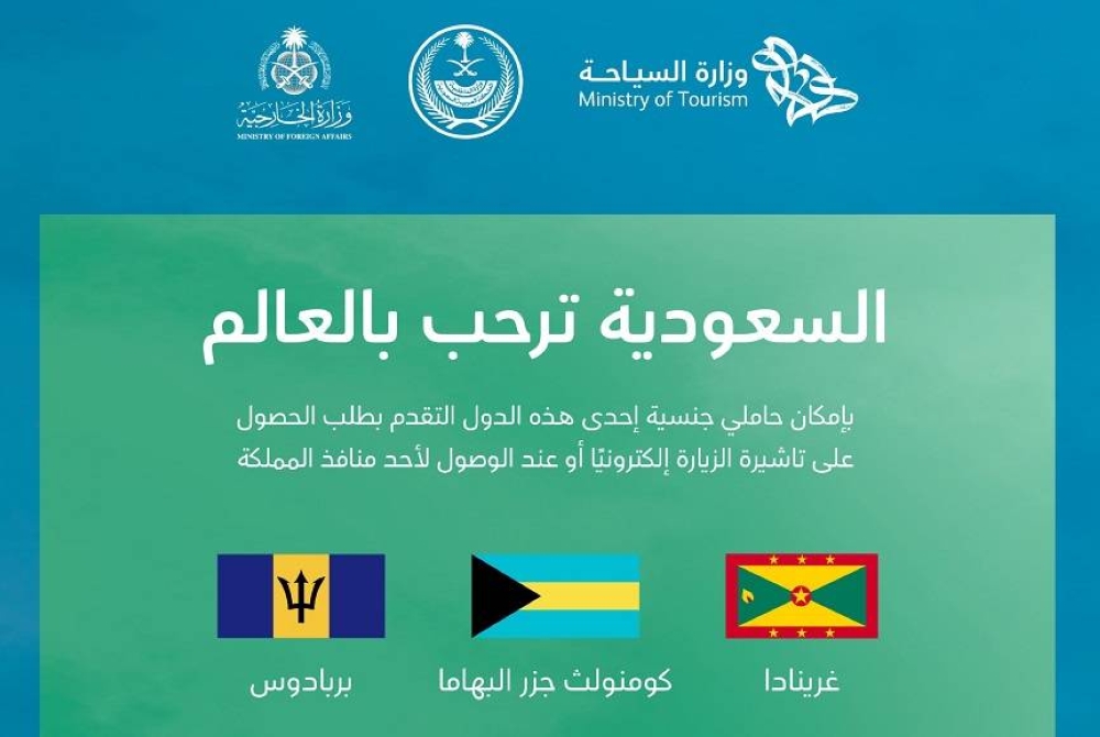 وكشفت أن الدول المضافة هي: كومنولث جزر البهاما، بربادوس، غرينادا، حيث تمنح التأشيرة لمواطني تلك الدول بصلاحية سنة واحدة، ولعدة سفرات، وبمدة إقامة تصل إلى 3 أشهر خلال العام، كما تُصدر التأشيرة الإلكترونية بشكل فوري من السفارة السعودية الرقمية في المنصة الوطنية الموحدة للتأشيرات في وزارة الخارجية، كما يمكن لحاملي جنسية إحدى هذه الدول التقدم بطلب الحصول على تأشيرة الزيارة عند الوصول إلى أحد منافذ السعودية، وتمكّن تأشيرة الزيارة من: السياحة، العمرة، الأعمال، زيارة الأقارب والأصدقاء.