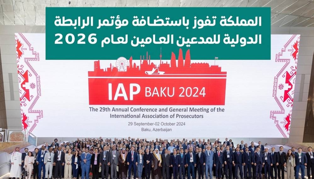 أعلنت الرابطة الدولية للمدعين العامين (IAP) فوز ملف المملكة العربية السعودية باستضافة المؤتمر السنوي للرابطة ٢٠٢٦، وذلك خلال المؤتمر السنوي المنعقد في مدينة باكو بجمهورية أذربيجان.