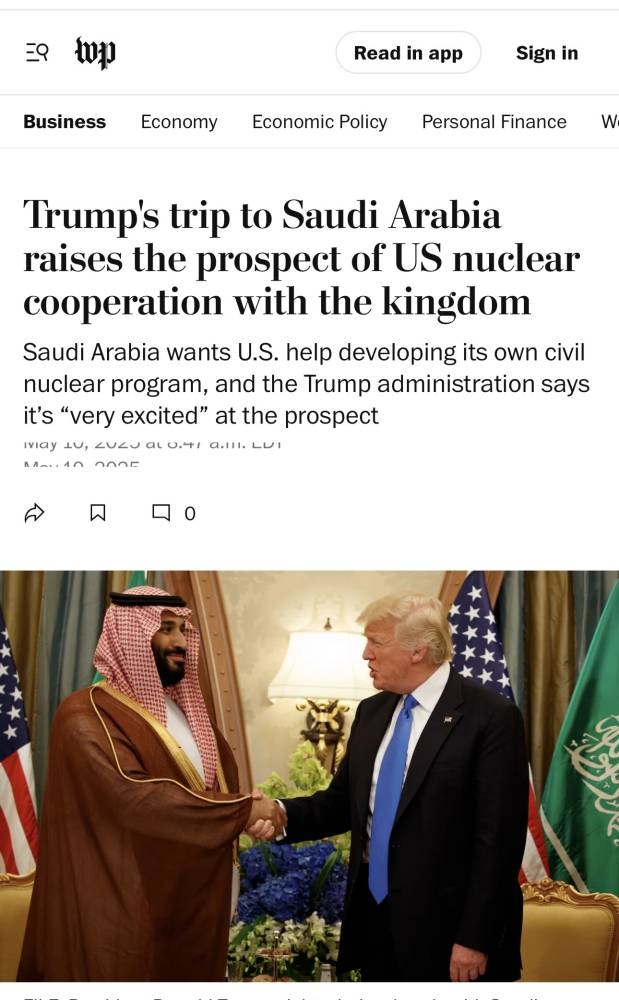 وكشفت الصحيفة الرغبة السعودية في الحصول على دعم أمريكي لإنشاء برنامج نووي مدني، وهي خطوة طموحة تعكس توجهات المملكة نحو تنويع مصادر الطاقة وتعزيز السيادة التكنولوجية. وبحسب الصحيفة، أبدت الإدارة الأمريكية حماساً واضحاً لهذه الشراكة، وسط نقاش داخلي في واشنطن بشأن تبعاتها، خصوصاً في ظل توتر إقليمي يُغذّيه سباق النفوذ.