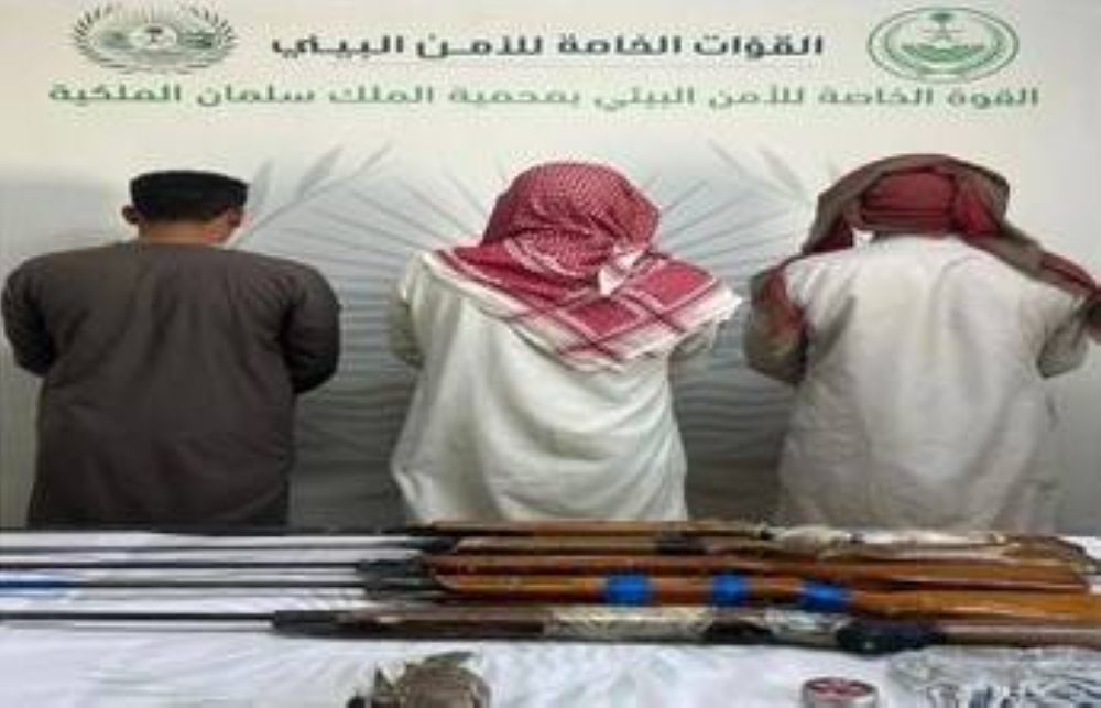 تمكنت الدوريات الميدانية للقوات الخاصة للأمن البيئي وهي تؤدي مهماتها في تنفيذ نظام البيئة بمحمية الملك سلمان الملكية، من القبض على (3) مواطنين وهم: