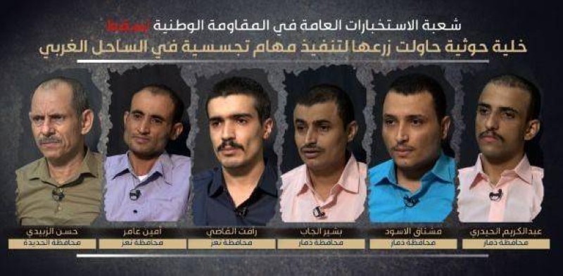 وأفاد الإعلام العسكري في بيان له بأن «عبدالكريم الحيدري ومشتاق علي الأسود وبشير عبده الجاب من محافظة ذمار، ورأفت عبدالرؤوف القاضي وأمين مهيوب عامر من محافظة تعز، وحسن حميد الزبيدي من محافظة الحديدة» أُلقي القبض عليهم قبل أن يكملوا إجراءات الانتساب، والبعض الآخر في فترة التدريب إذ أقروا أثناء التحقيق معهم بأنهم مرسلون من قِبل قيادات مرتبطة بما يُسمى جهاز الأمن والمخابرات الحوثي إلى جبهة الساحل الغربي لتنفيذ مهمات تجسسية في صفوف القوات المشتركة.