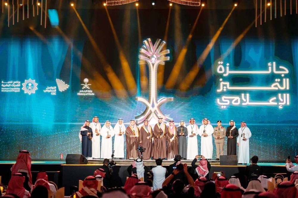 توّج وزير الإعلام سلمان الدوسري، مساء أمس (الإثنين)، الجهات والأفراد الفائزين بجائزة التميُّز الإعلامي لعام 2024م، في نسختها الخامسة، بالشراكة مع برنامج تنمية القدرات البشرية -أحد برامج تحقيق رؤية السعودية 2030-، وذلك في حفلٍ أُقيم بمسرح أبو بكر سالم في بوليفارد سيتي بمدينة الرياض.