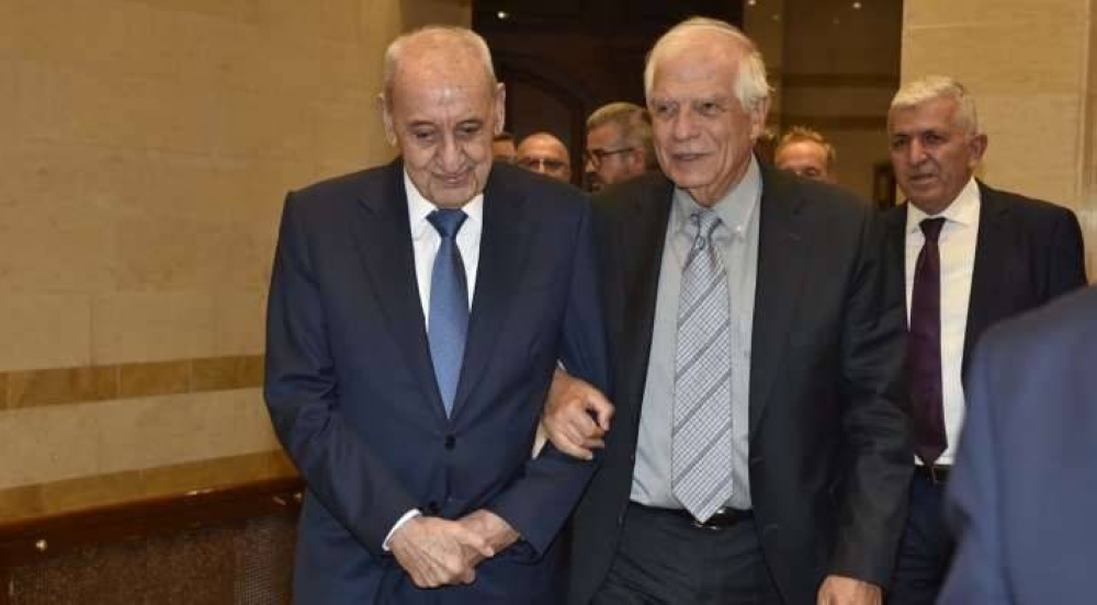 وأكّد رئيس مجلس النواب نبيه بري أنّ لبنان لا يريد الحرب، ولكن له الحق وقادر على الدفاع عن نفسه، مستعرضاً في اللقاء مع بوريل التحديات التي تواجه بلاده والمنطقة على ضوء مواصلة إسرائيل عدوانها على قطاع غزة وتداعياته الأمنية والسياسية على الأمن والاستقرار في منطقة الشرق الأوسط.