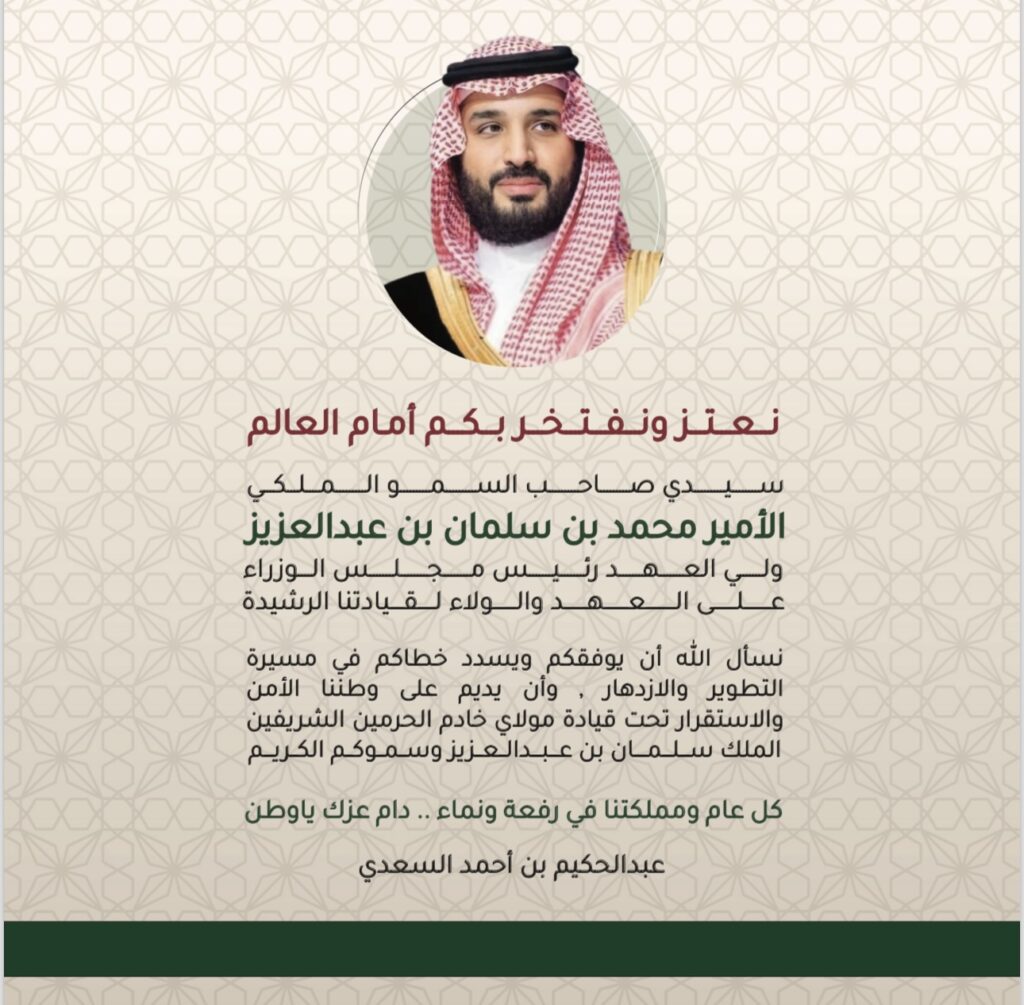 نتقدم بخالص الدعاء إلى مقام سمو ولي العهد، سائلًا المولى عز وجل أن يوفقه ويسدد خطاه لما فيه خير الوطن وازدهاره.