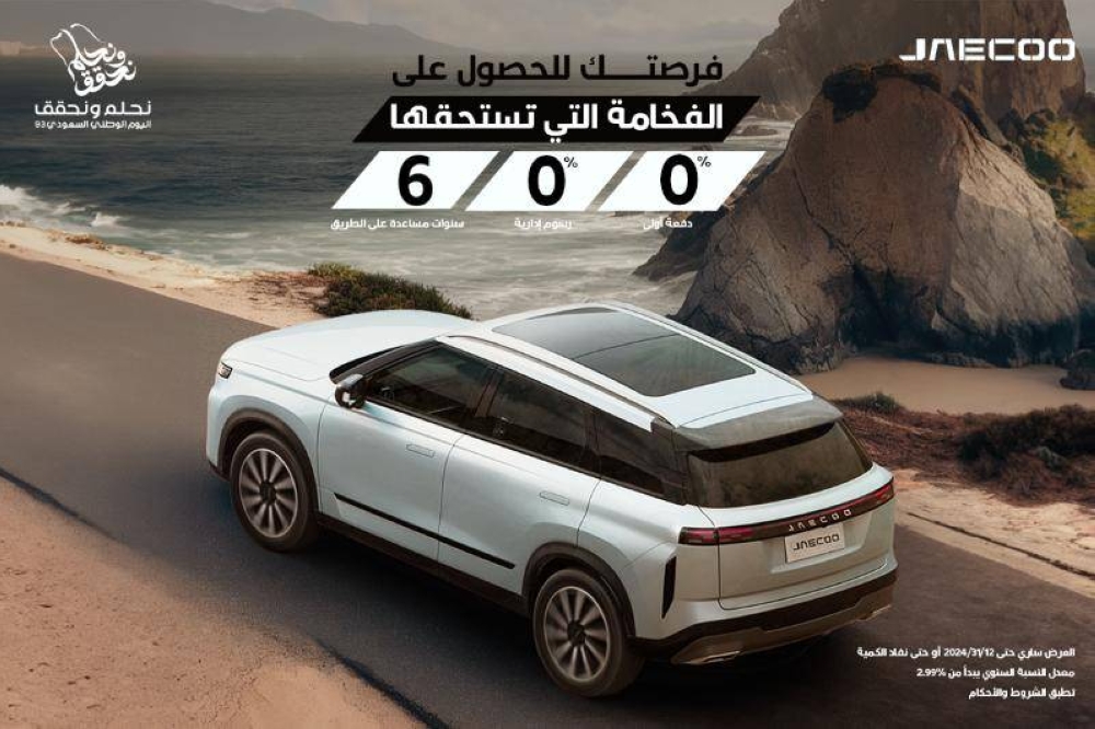 احتفالاً باليوم الوطني السعودي الرابع والتسعين وتعبيراً عن ولائها للشعب السعودي والمقيمين، أطلقت جايكو وأومودا، العلامتان التجاريتان الدوليتان التابعتان لمجموعة شيري، إحدى أكبر شركات تصنيع السيارات في الصين، مجموعة من العروض المميزة تحت شعار «نحلم ونحقق». تشمل هذه العروض «صفر دفعة أولى»، و«صفر رسوم إدارية» مع خيارات تمويلية متعددة، بالإضافة إلى قسيمة شرائية من أمازون السعودية بقيمة 3000 ريال سعودي، ومن المقرر أن تستمر هذه العروض حتى نهاية سبتمبر 2024.
