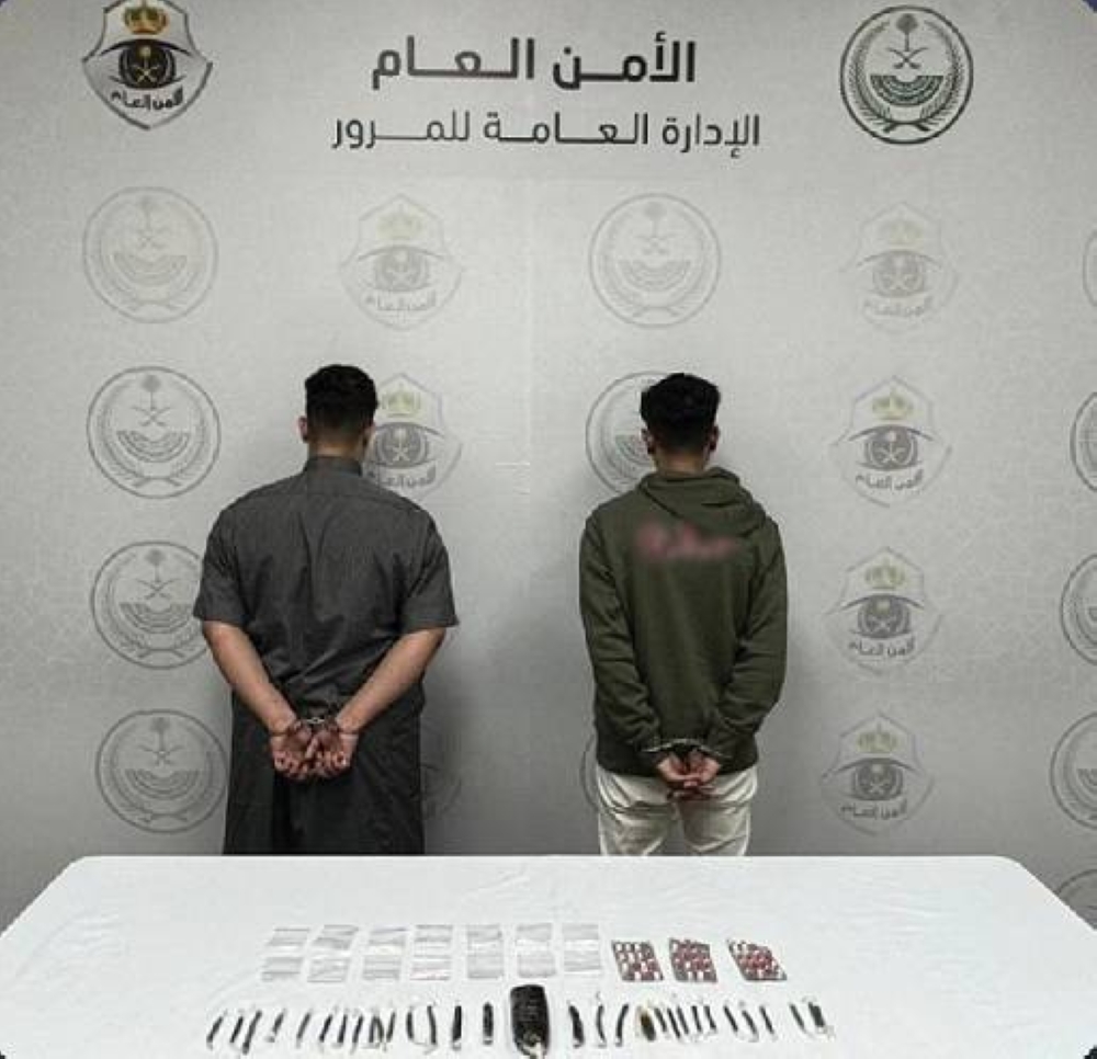 قبض مرور محافظة جدة على مقيمين من الجنسية اليمنية لاتخاذهما وحدة سكنية وكرًا لترويج مادة الحشيش المخدر، وأقراصًا