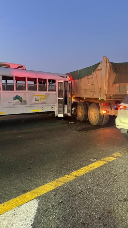 حادث بين حافلة لنقل العمالة و شاحنة في مكة يتسبب في إصابات مختلفة