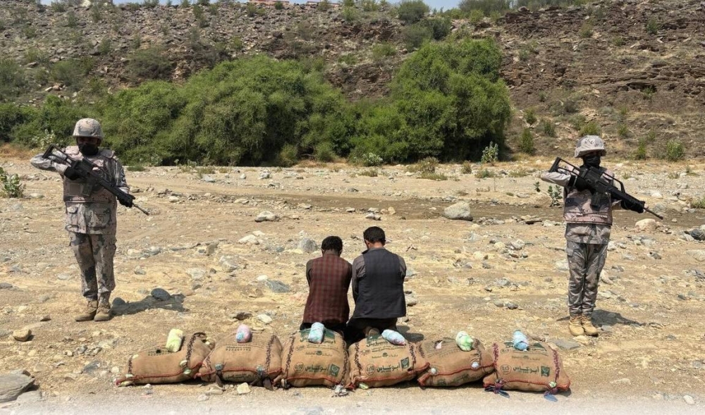 قبضت الدوريات البرية لحرس الحدود في قطاع العارضة بمنطقة جازان على مخالفين لنظام أمن الحدود من الجنسية اليمنية، لتهريبهما (140) كيلوغرامًا من نبات القات، وجرى استكمال الإجراءات النظامية الأولية بحقهما، وتسليمهما والمضبوطات لجهة الاختصاص.