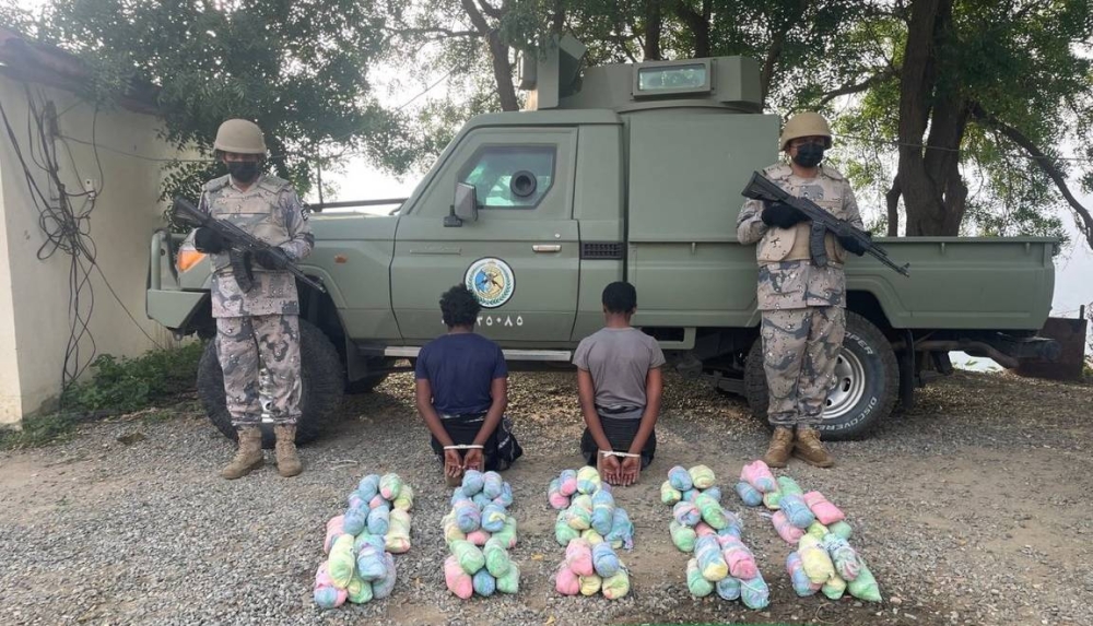 قبضت الدوريات البرية لحرس الحدود في قطاع الدائر بمنطقة جازان على مخالفين لنظام أمن الحدود من الجنسية اليمنية، لتهريبهما نبات القات المخدر، وجرى استكمال الإجراءات النظامية الأولية بحقهما، وتسليمهما والمضبوطات لجهة الاختصاص.