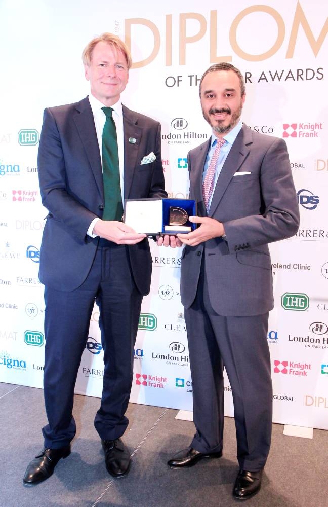 ويأتي هذا التكريم بناءً على تصويت دبلوماسيين يمثلون أكثر من 180 بعثة دبلوماسية مقيمة في المملكة المتحدة، ضمن آلية ترشيح وتصويت سنوية تنظمها مجلة (Diplomat Magazine)، حيث تُمنح الجائزة للسفراء والدبلوماسيين الذين قدّموا إسهامات بارزة في العمل الدبلوماسي داخل المملكة المتحدة.