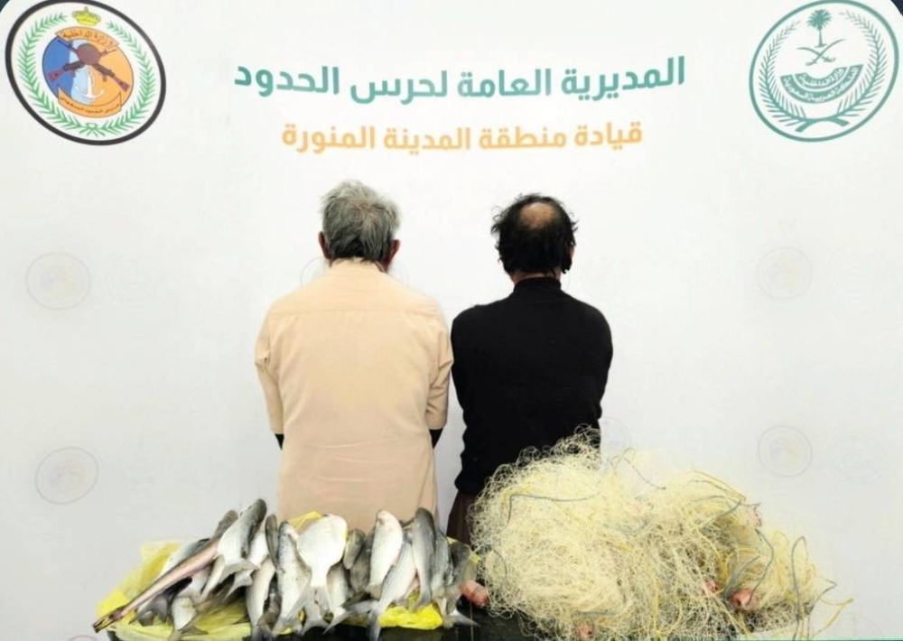 ضبطت الدوريات الساحلية لحرس الحدود بقطاع ينبع بمنطقة المدينة المنورة مقيمين من الجنسية الميانمارية، مخالفين للائحة الأمن والسلامة لمزاولي الأنشطة البحرية في المناطق البحرية للمملكة العربية السعودية، وذلك لممارستهما الصيد الراجل بدون تصريح، وبحوزتهما أسماك مصيدة، وتم اتخاذ الإجراءات النظامية بحقهما بالتنسيق مع الجهات المختصة.