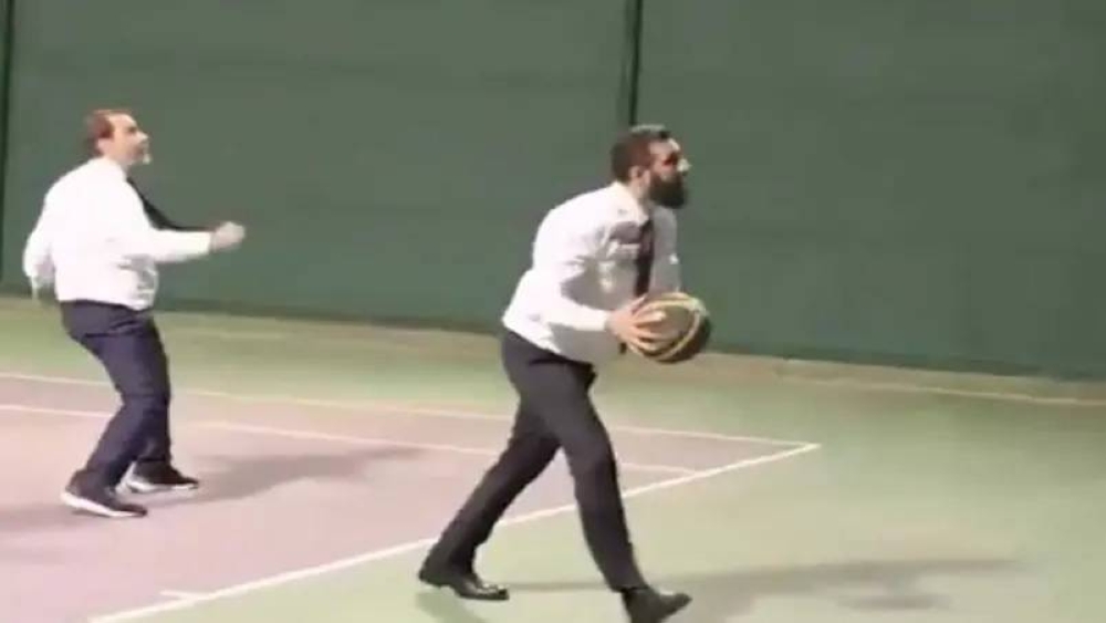ثلاث نقاط في ضربة واحدة، هكذا بدا الرئيس السوري أحمد الشرع وهو يمارس رياضة كرة السلة ببراعة مع وزير الخارجية أسعد