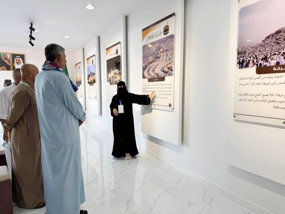وتبدأ رحلة الحاج في المعرض التوعوي بالتعرف على مناسك الحج، والمواقيت، والمشاعر المقدسة، إذ يتضمن المعرض لوحات تعريفية بالصورة والنص عن المواقيت، والمشاعر، وتستمر رحلة الحاج في التعرف على مناسك المبيت في منى، والانتقال إلى مزدلفة، ومن ثم الوقوف في مشعر عرفات، ورمي الجمرات، ويوم النحر، وأيام التشريق، وطوافي الإفاضة والوداع.