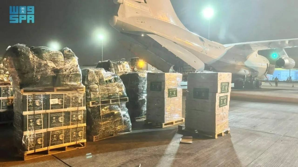وتحمل الطائرة على متنها مساعدات إغاثية متنوعة تشتمل على مواد طبية وإيوائية بالإضافة إلى المواد الغذائية الأساسية.