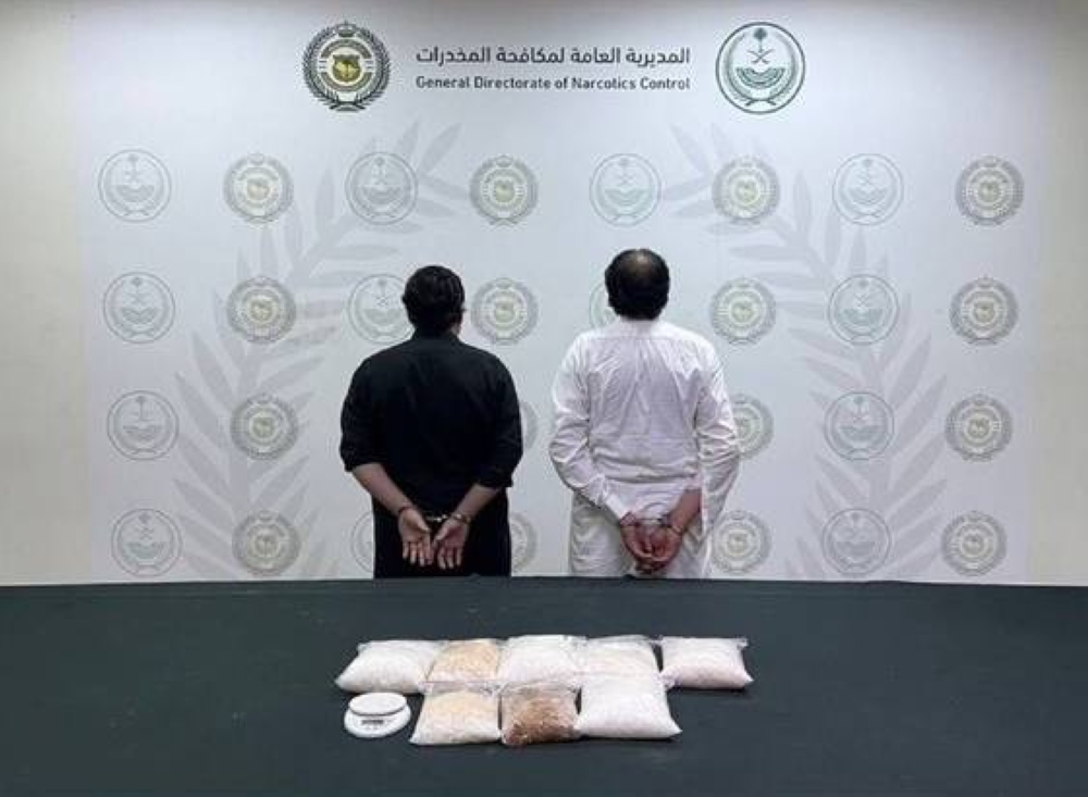قبضت المديرية العامة لمكافحة المخدرات على مقيمين من الجنسية الباكستانية بمنطقة الرياض لترويجهما 7 كيلوغرامات