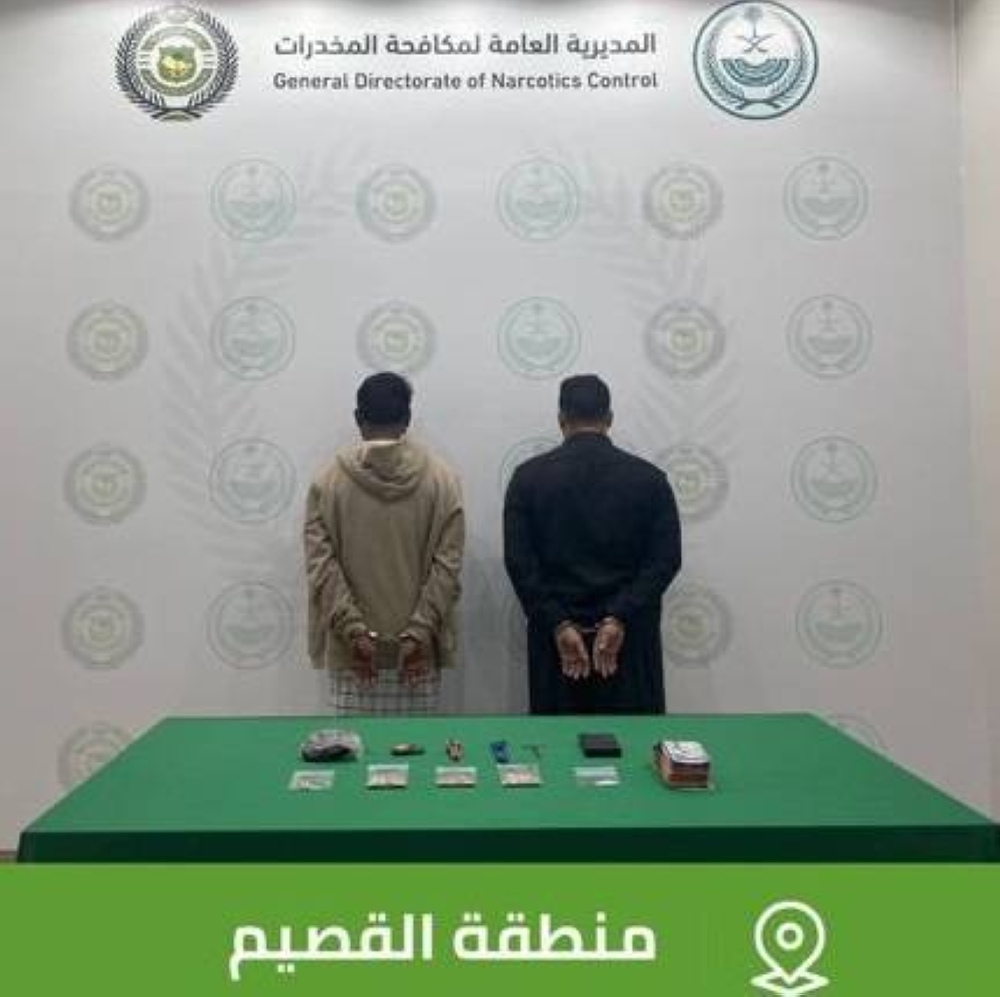 «مكافحة المخدرات» بالقصيم تقبض على شخصين لترويجهما مواد مخدرة